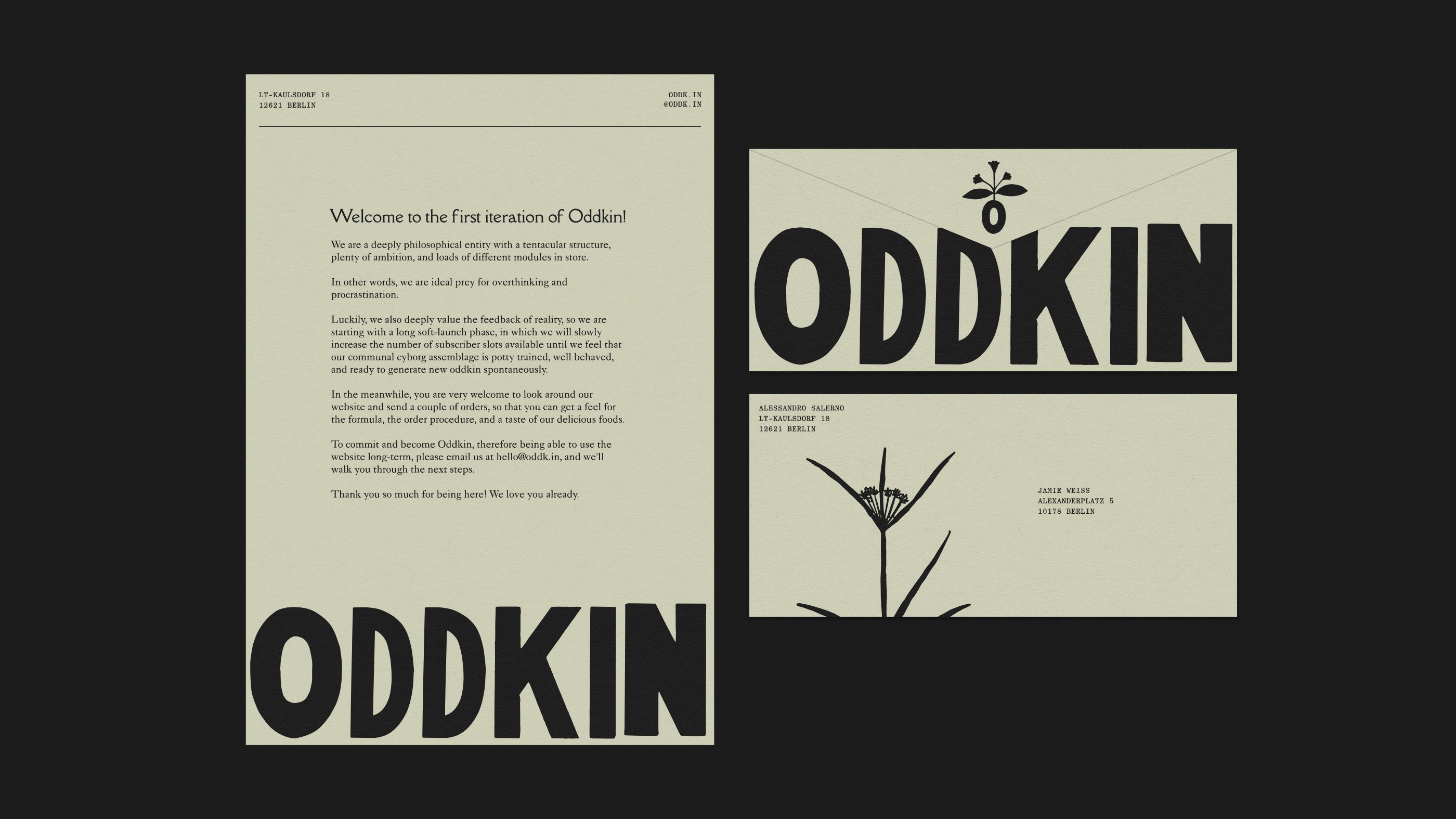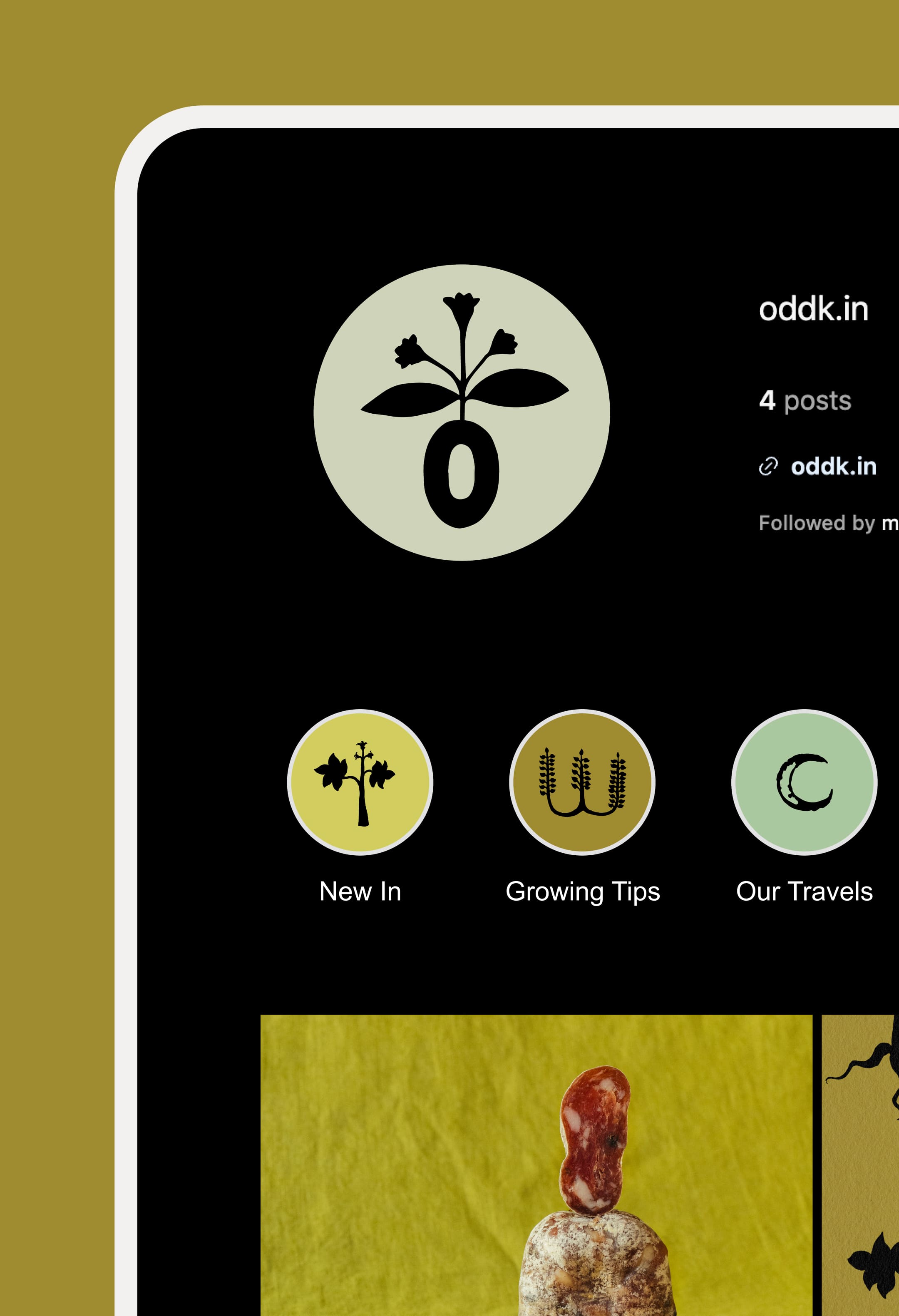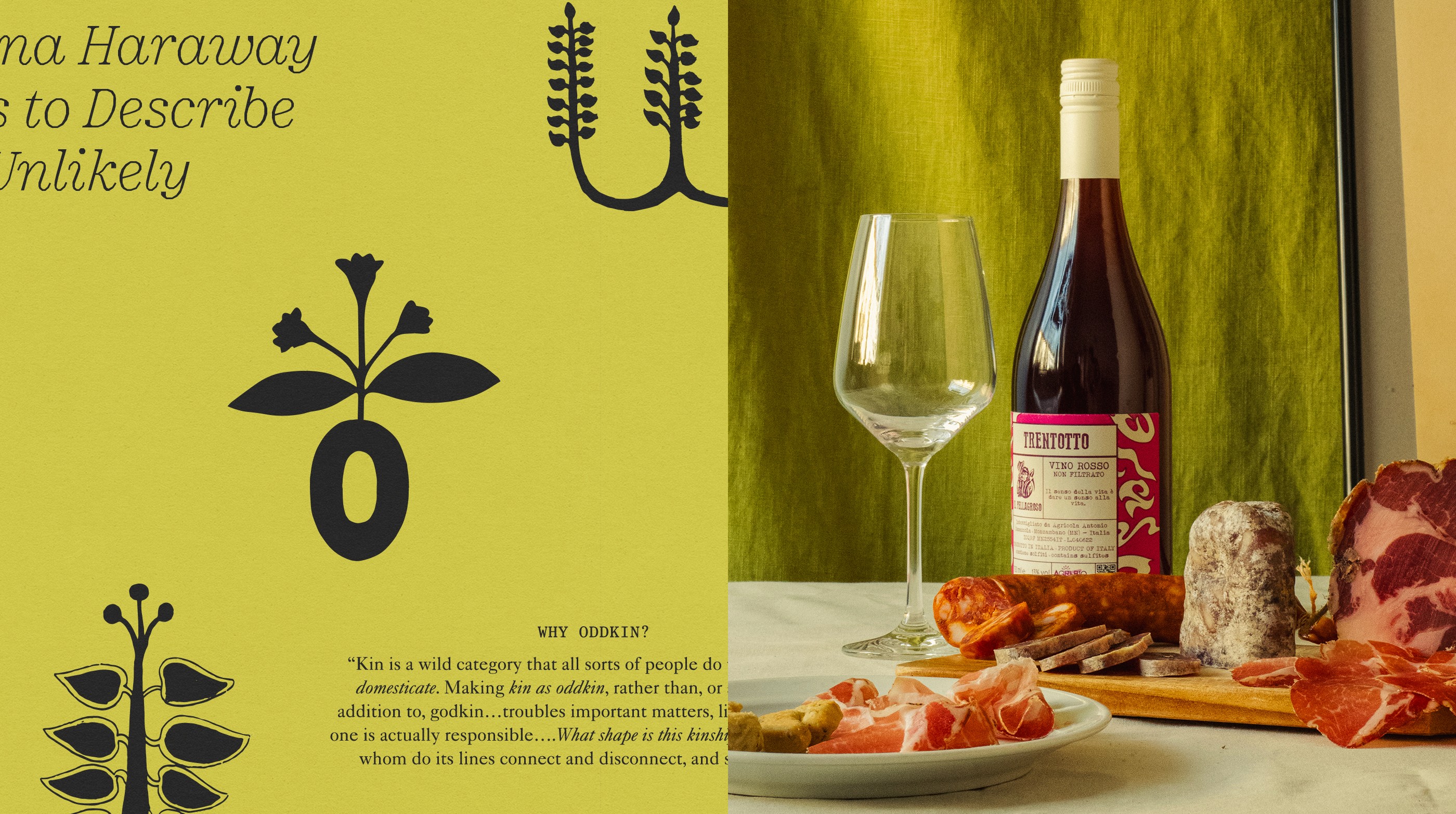 Oddkin's founder is Italian, and many of their products are sourced from Italy. They also host farm shares in Sicily, which are focused on foraging and living off the land. During our research phase, we stumbled upon the goldmine of archived Italian "Erbarios," or herb journals, which felt perfect for these themes. Because these are in the public domain, they are free to use. We then translated these illustrations into patterns whose organic charm worked well as illustrative elements for the brand.